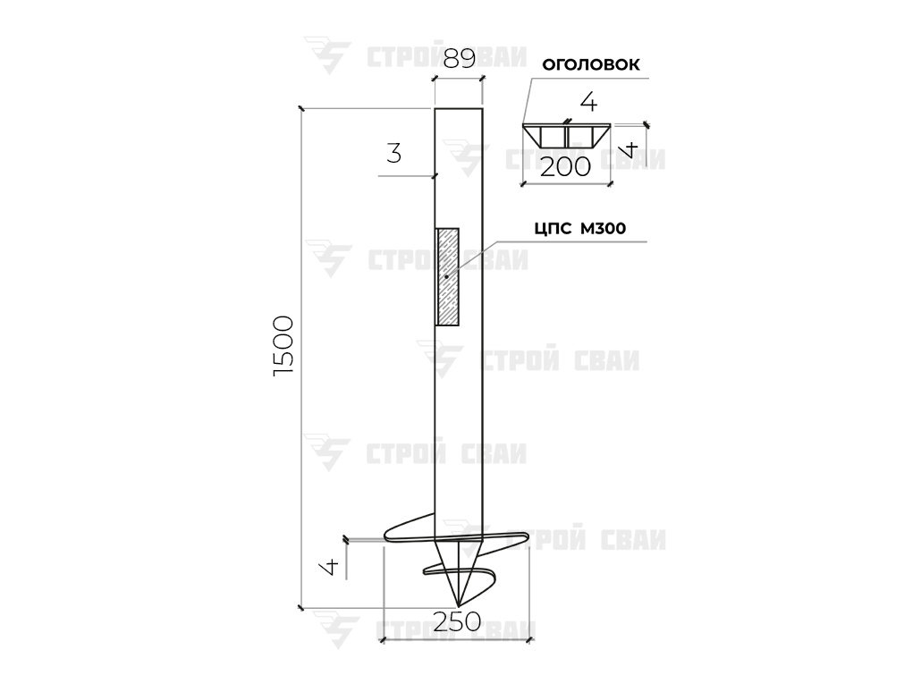 В модельном ряду оцинкованная винтовая свая 89х1500 мм занимает третью позицию и имеет следующие конструкционные особенности: диаметр ствола (типоразмер) равен 89, а толщина металла трубы – 3 мм. Вместе с винтовой лопастью (толщина 4, диаметр 250 мм) такая опора может подвергаться значительным нагрузкам (горизонтальным, наклонным, вертикальным) без угрозы разрушения. Главное отличие от стандартных изделий – обработка методом горячего цинкования, гарантирующая повышение сопротивляемости к коррозии в разы и обладающая способностью к самовосстановлению (небольшие царапины и сколы затягиваются в течение года).