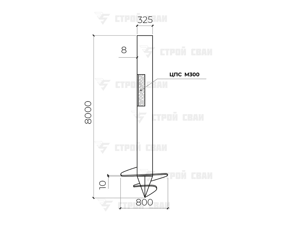 - цена сваи 325 8 метров — благодаря заводскому производству стоимость за штуку и работ сократилась на 40-50%;