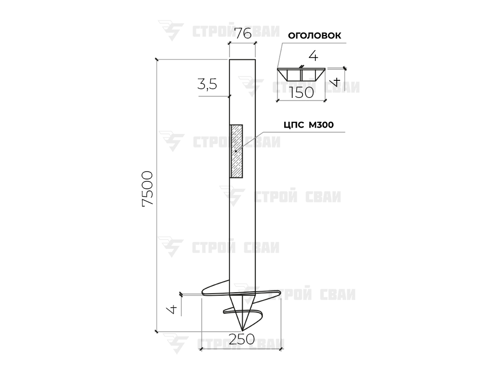 Завод «СтройСваи» реализует продукцию собственного изготовления – свайные опоры в расширенном ассортименте. У нас можно заказать и купить винтовые сваи 76/7500 мм (толщина стенки 3,5 мм) по низким ценам. Предлагаем комплексные услуги под ключ в пределах Москвы и Московской области: пробное бурение и проектные расчеты, доставку и установку, аренду спецтехники.